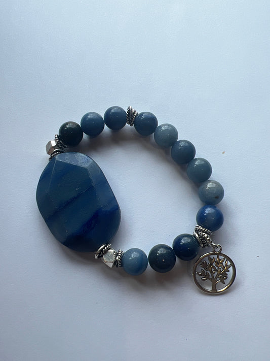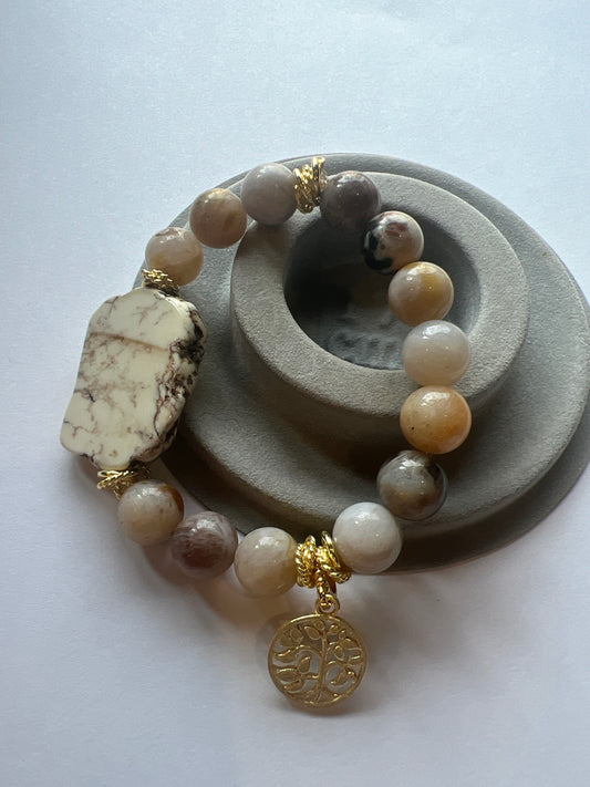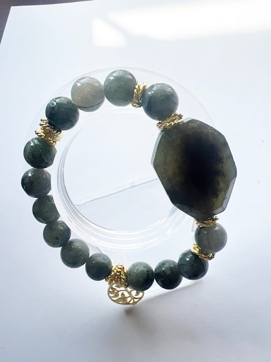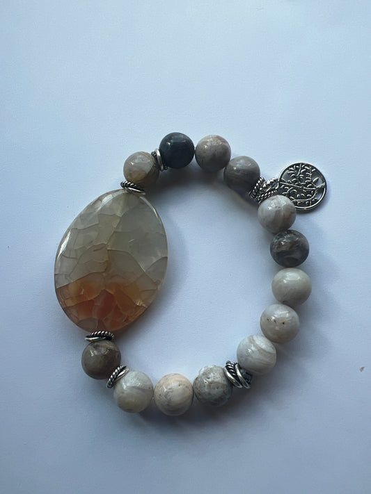 Gemstone Bracelet with Center Stone/ Bamboo Agate