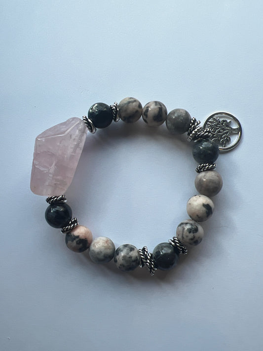 Gemstone Bracelet with Center Stone/ Picasso Jasper with Rose Quartz