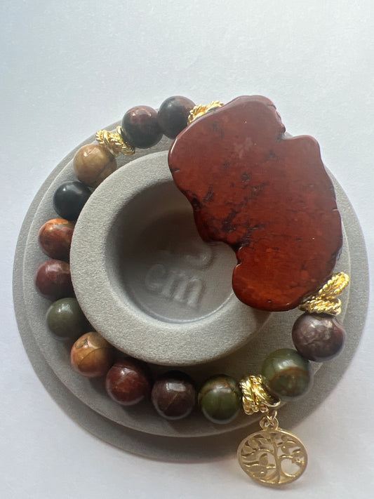 Gemstone Bracelet with Center Stone/ Picture Jasper