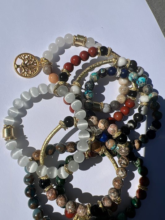Gemstone Bracelet with Golden Aqua Jasper with gold accents