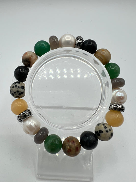 Mixed Gemstone Bracelet with Stainless Steel Beads and Fresh Water Pearls