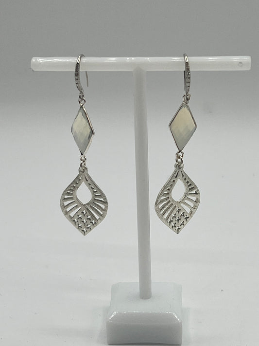 Silver Gemstone Earring with Opalite Rhombus and Marquise Filigree Charm