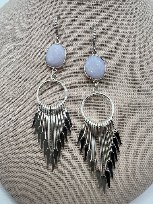 Gemstone Earring with Bezel Set Opalite with large silver tassel