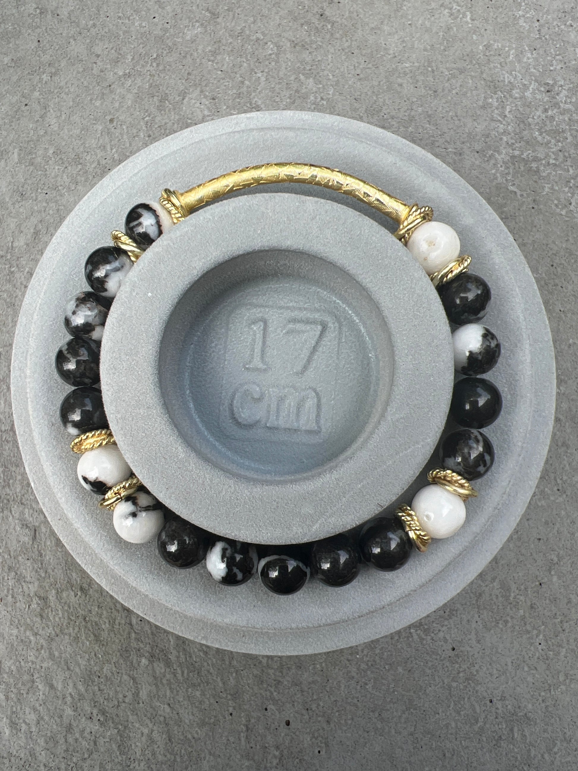 Gemstone Bracelet Black and White Picture Jasper with Gold accents