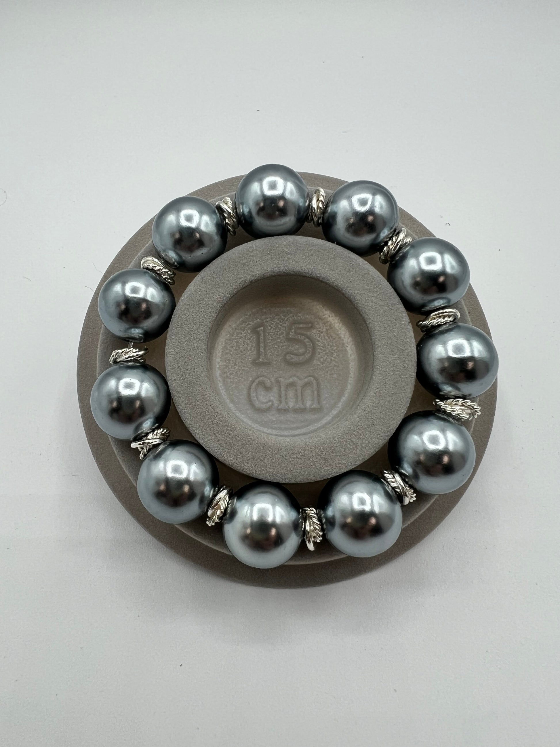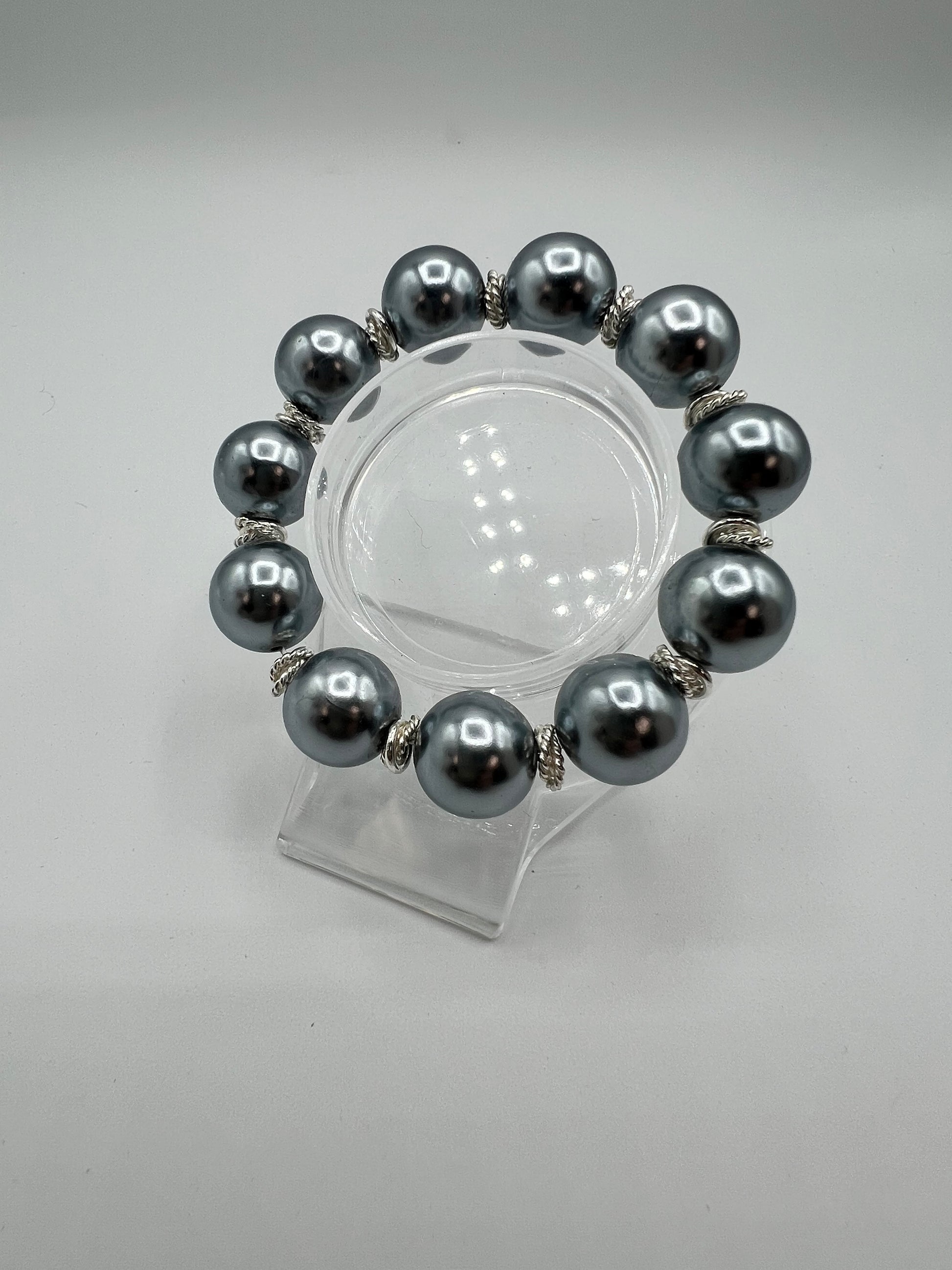 Jumbo Gemstone Bracelet Gray Shell Pearl. Silver accents