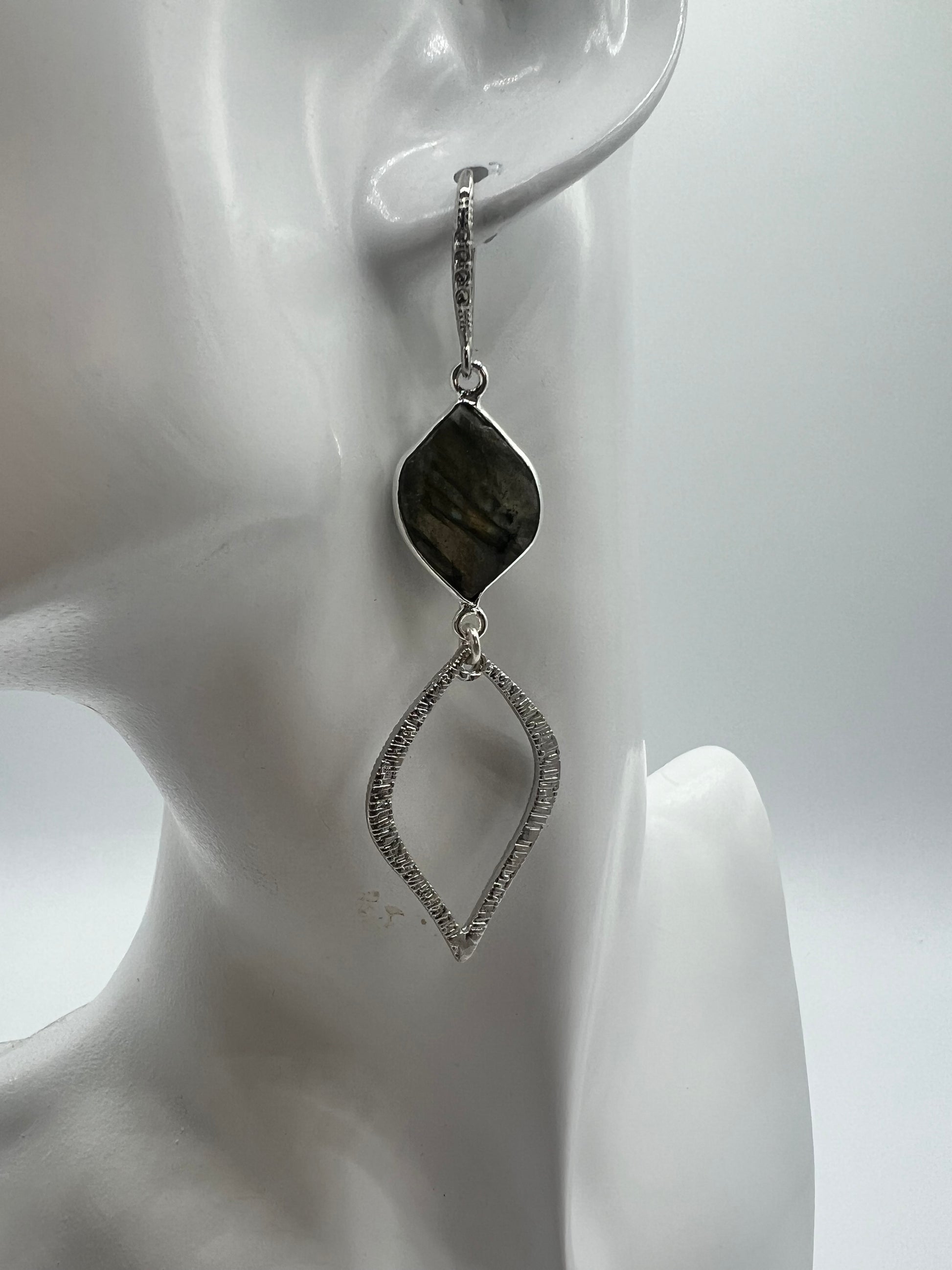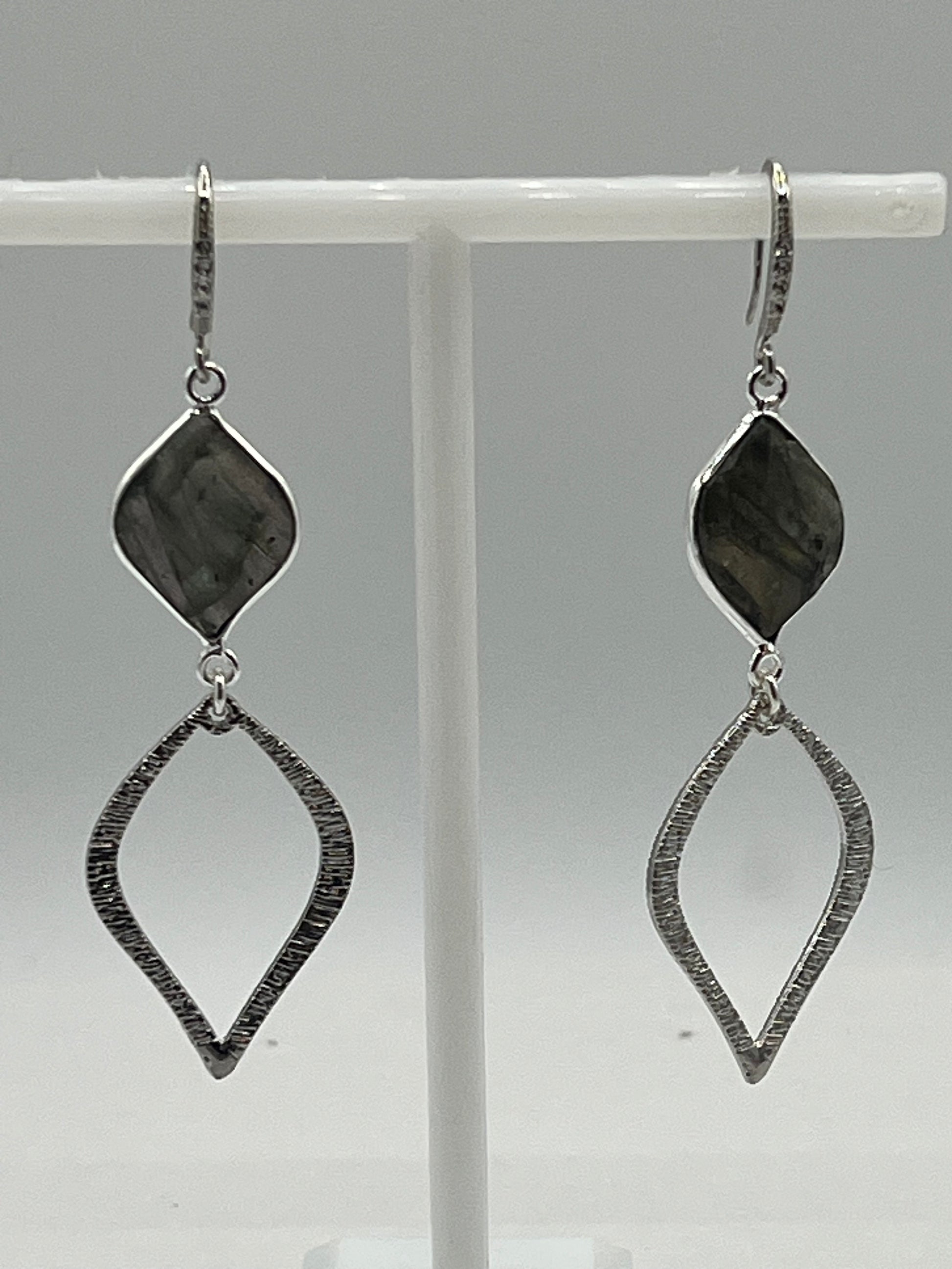 Silver Gemstone earring with Labradorite Marquis and Brushed Silver Marquis Charm